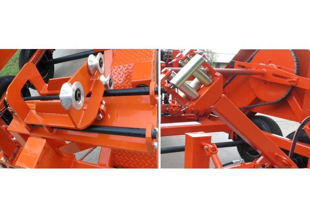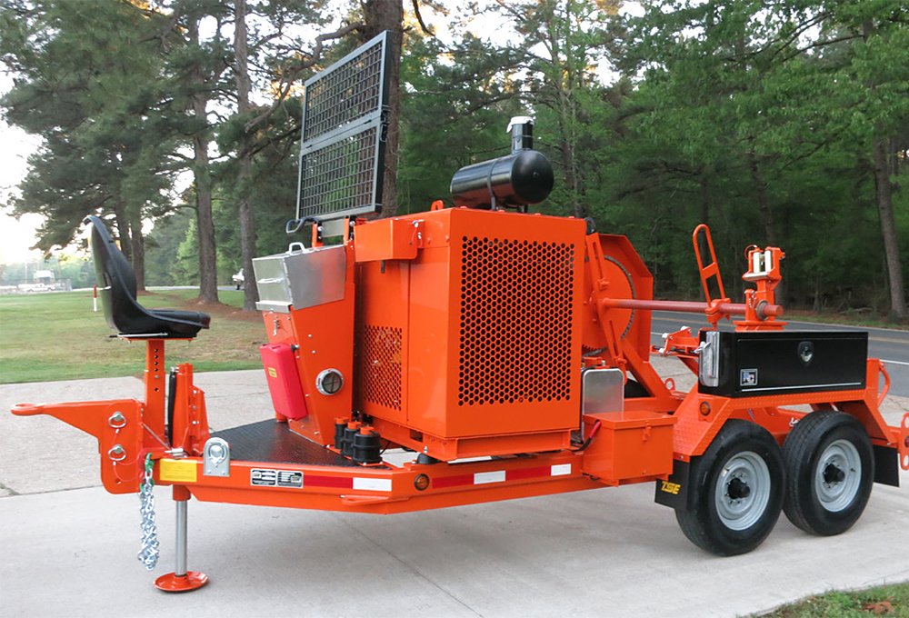 The TSE Model DPT-50B is a heavy duty drum puller designed for distribution conductor installation. The reel drive incorporates the latest in hydrostatic transmissions that allow the operator to infinitely vary the linespeed and linepull for safe, positive control during the pulling operation. The maximum desired linepull can be preset prior to pulling so that the reel drive will stall if a restriction to the line occurs avoiding damage to the conductor, towers and hardware. In the tensioning mode, the hydraulic system permits the line to be pulled at a steady and controlled tension with automatic pull back to keep the conductor suspended if the pulling force is reduced.